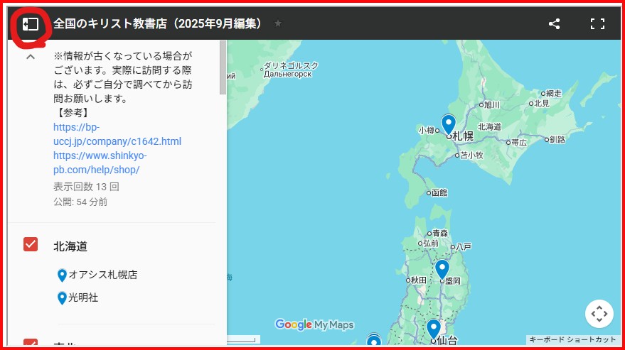「キリスト教書店一覧」はあれど、「感覚的に横断できるマップ/地図」がなかったので作らせていただきました。