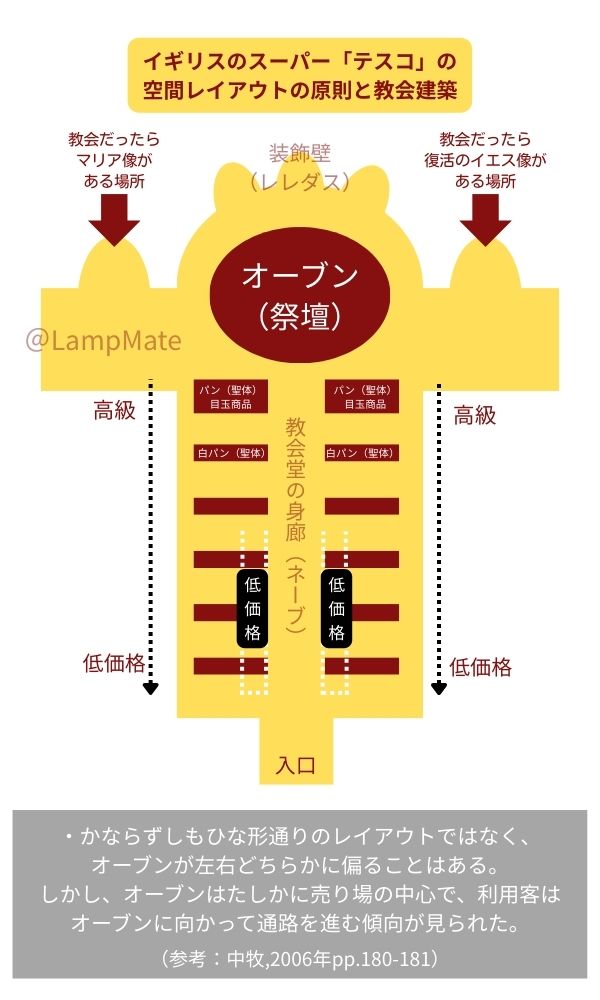 テスコの空間はカトリックのキリスト教会と同じ構成をしている…らしい